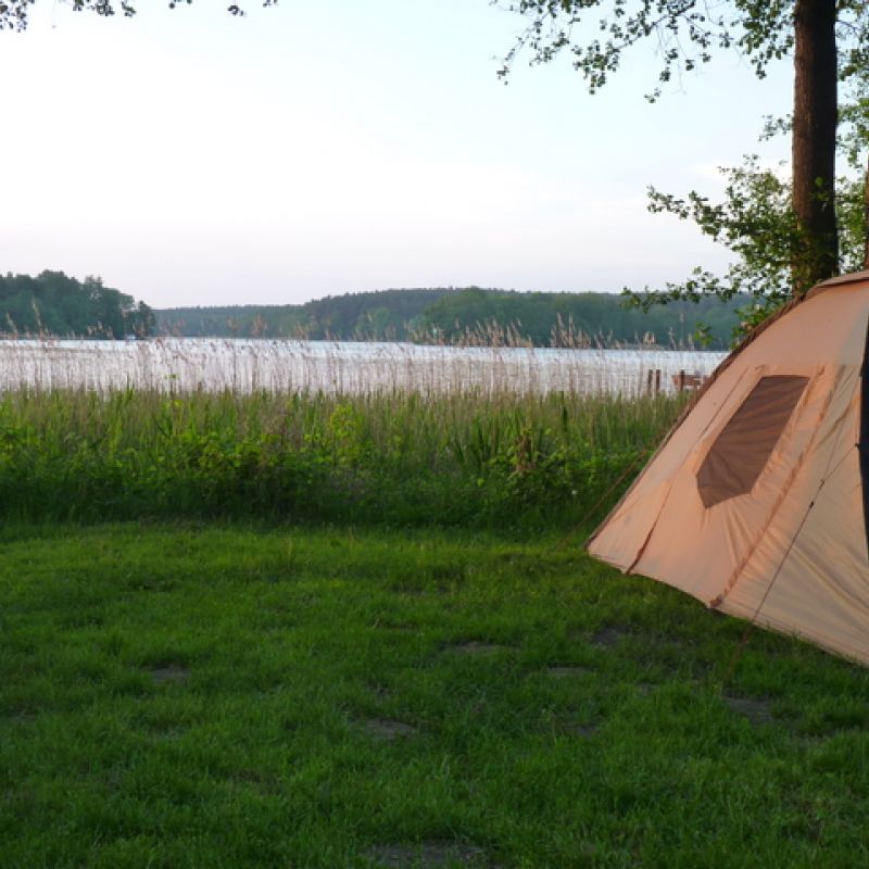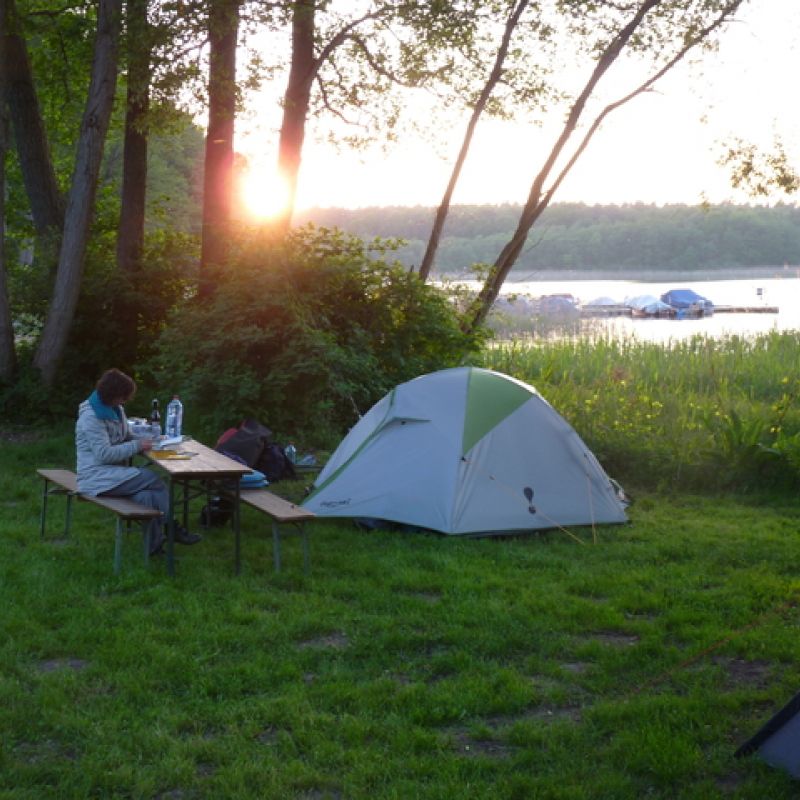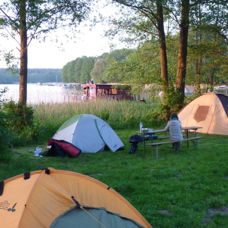 Für Wanderer mit Zelten. Komm spontan mit Rad oder Kanu und schlag dein Zelt auf der Wiese auf.