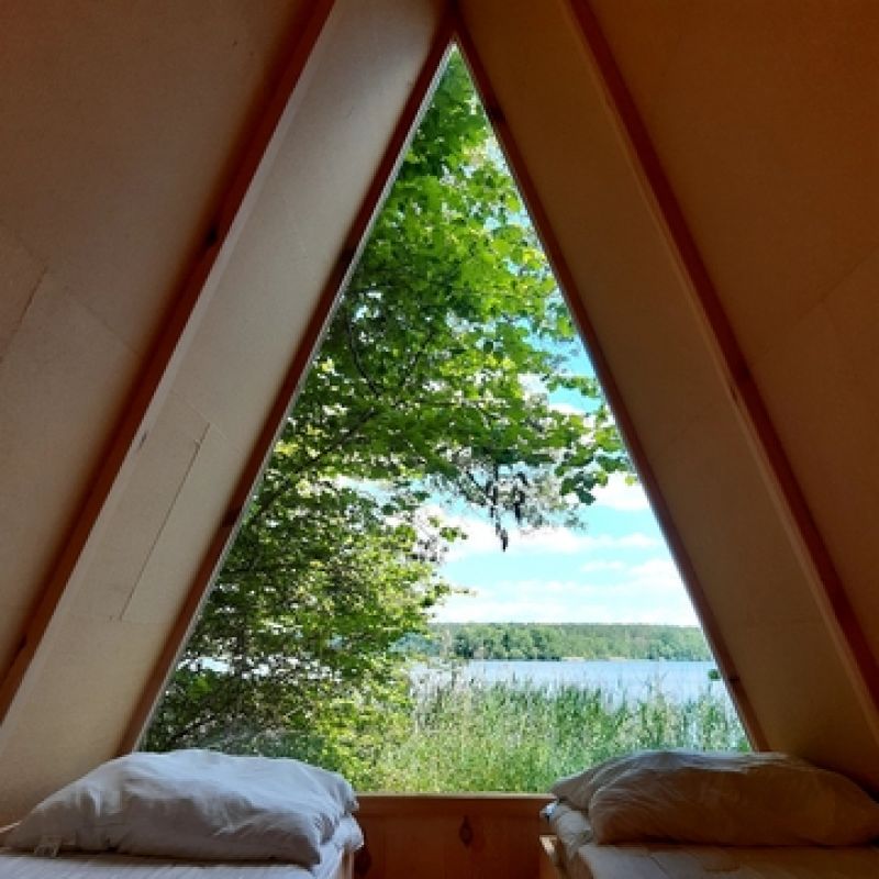 Unsere Finnhütten bieten Platz für 2 Personen (buchbar ab 1 Übernachtung) und verbinden Zelt-Romantik mit etwas mehr Komfort. Ein Parkplatz (etwas entfernt) und ein Kanu-Ständer sind inklusive. Strom gibt es nicht – bitte Laken, Schlafsäcke und bei Bedarf eigenes Kopfkissen mitbringen.