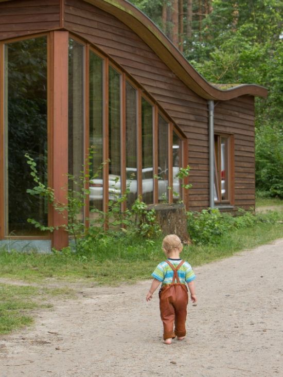 Das große Sanitärgebäude erzählt ebenfalls unsere Geschichte: das erste haben wir bis auf die Technik und Bodenplatte fast vollständig selbst gebaut. Für das zweite fehlte uns die Kraft und Zeit - deshalb fiel die Wahl auf ein nach unserem Entwurf vorgefertigtes finnisches Blockhaus von Polarlifehaus, ein hundertprozentiges Naturprodukt aus massivem Holz.