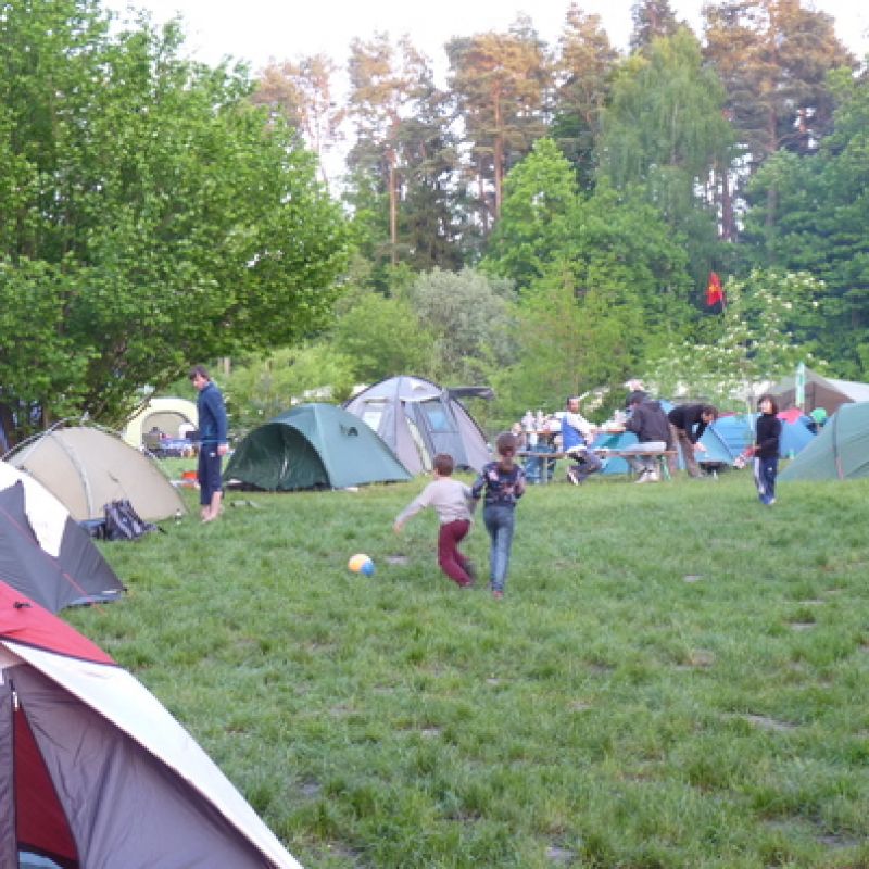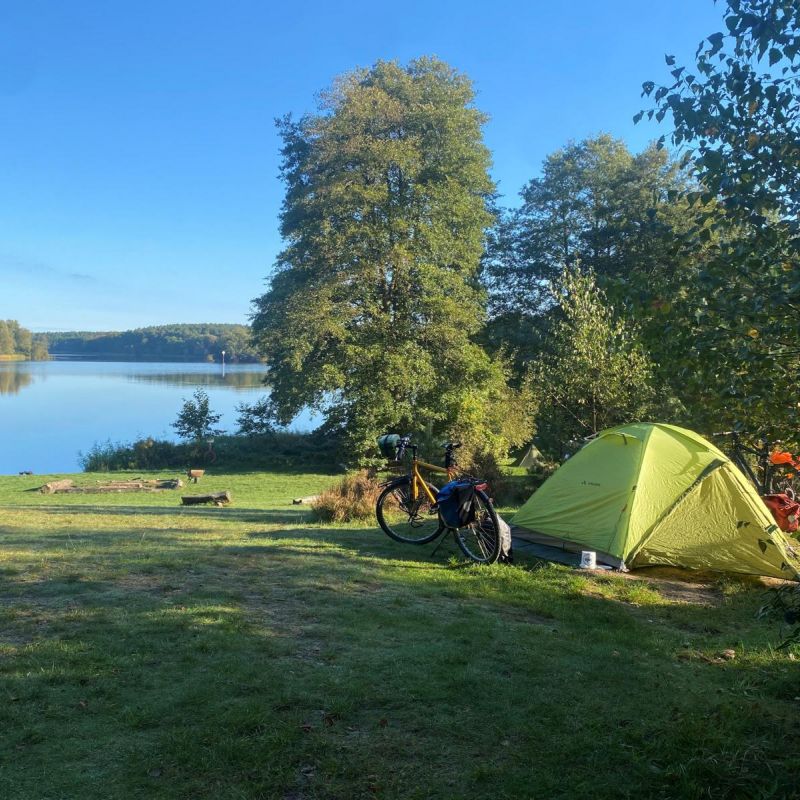 Für Wanderer mit Zelten. Komm spontan mit Rad oder Kanu und schlag dein Zelt auf der Wiese auf.